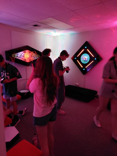 Today, we hosted a middle school photography class that attend Denver Academy. Thomas Laird, Digital Art and SmartLab Instructor, organized the field trip. We gave the students free rein to photograph the light sculptures. They had quite a time!