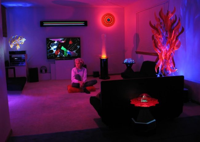 “The artist who creates these pieces is so charming and fun. She was born around the time of the Depression, but her work will do anything but. Her pieces are created using acrylic plastic which is manipulated using heat. The led lights she uses are carefully selected to ensure they play off, and with the sculpture. She loves color and the combinations she selects always ensure the piece still has a fun, sometimes whimsical, and interesting story to tell. If you ever have a chance to see one of Dorothy’s art gallery openings, you will never look at art the same. Lumonics Light & Sound Gallery is the place where an artist can find inspiration and everyone else can become consumed within it.”