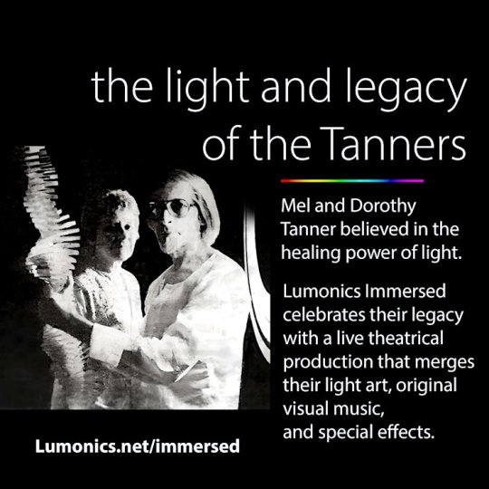 We present the most up-to-date form of the Lumonics expression that originated in 1969. Our intention is to expand the boundaries of sensory engagement and artistic expression, and honor Dorothy and Mel Tanner’s contribution to light art and the immersive experience.