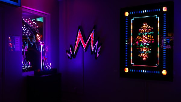 “Yess +Love = Bliss” by Dorothy Tanner, a work in light from Lumonics Gallery. Photo courtesy of Lumonics Gallery.
