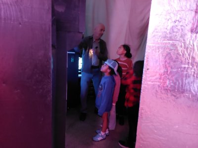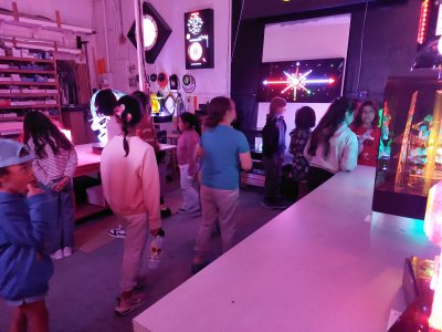 The girls attending were mostly in the second and third grade, and a couple in fourth grade. We took them on a tour of all the artwork and our art school, the gallery, and the performance space where we did a special light and sound immersion for them. We then took them “behind the scenes” to show them how we present the immersive experience.