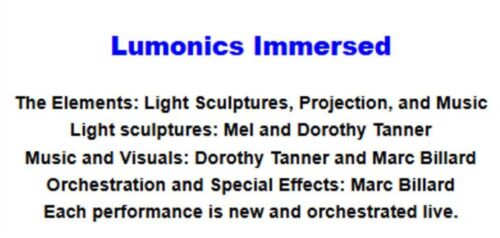 “We present the most up-to-date form of Lumonics. Our intention is to expand the boundaries of sensory engagement and artistic expression, and honor the Tanners’ contribution to light art and the immersive experience. If you want to get away, Lumonics will take you there!”