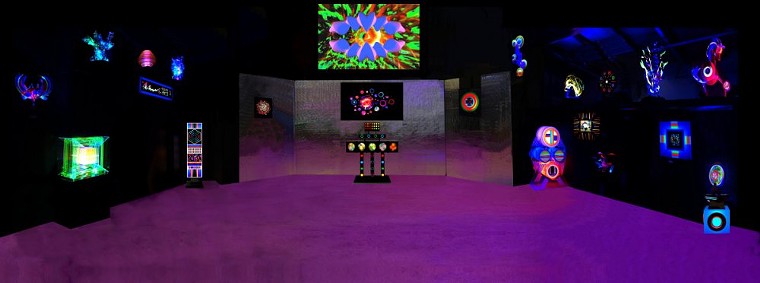 Before and after the performance, you are welcome to leisurely explore the artworks in the front gallery rooms, the larger performance space, and the Studio/Lumonics School of Light Art. Experience more than 75 wall-mounted and free-standing light sculptures of the past 50+ years.
